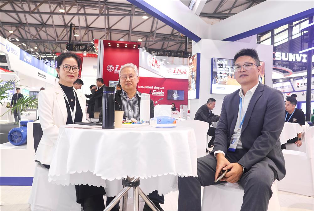 安波电机集团展台 秘书长陶敏强、副秘书长马惠芳与安波电机总经理韩